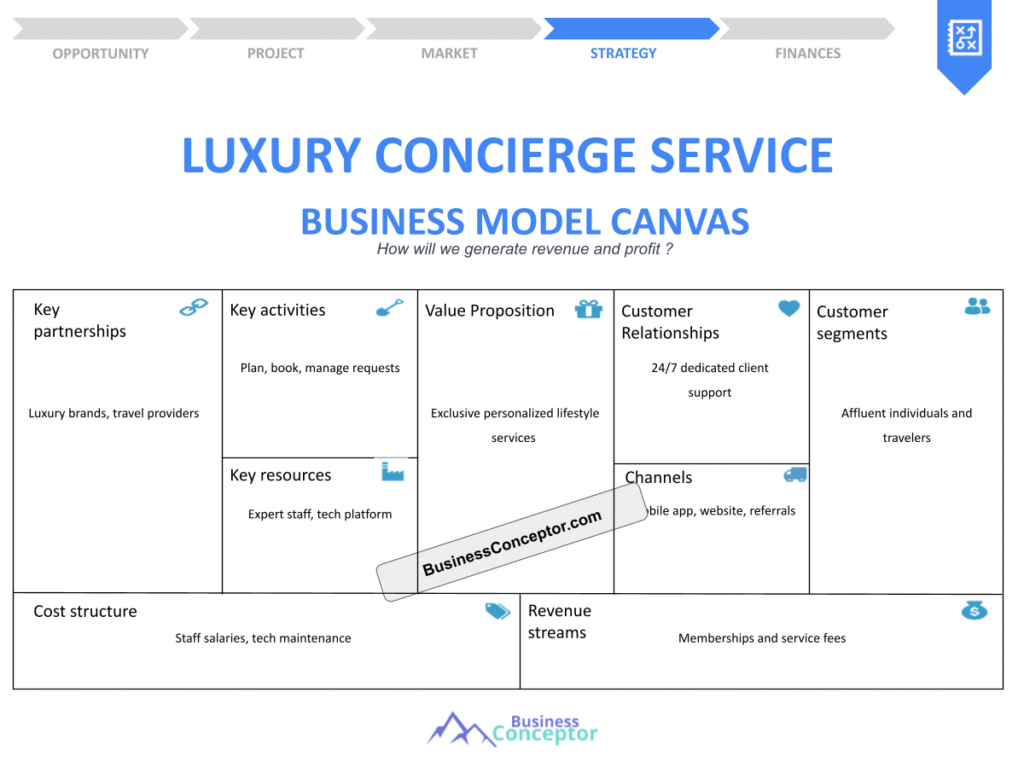 Creating a successful luxury concierge service business model involves understanding and integrating various components, including partnerships, customer segments, revenue streams, and technology. By leveraging the insights gained from the business model canvas, entrepreneurs can create a comprehensive strategy that prioritizes client satisfaction and operational efficiency.