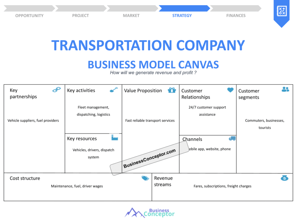 – The essential components of a Transportation Company Business Model Canvas