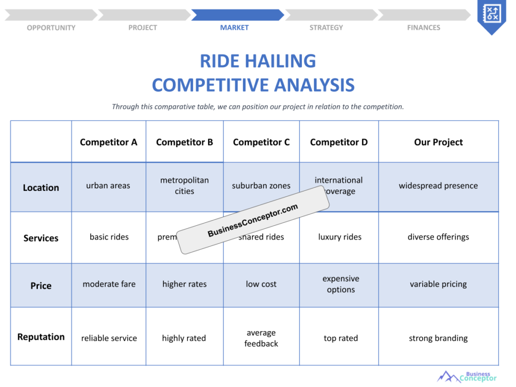 Moreover, competition studies also help identify gaps in the market. If a competitor is offering a service that is particularly well-received, it may highlight an area where your business can improve or innovate. Engaging in a competition study is not merely an exercise; it’s a strategic necessity for any ride-hailing company that wants to thrive.