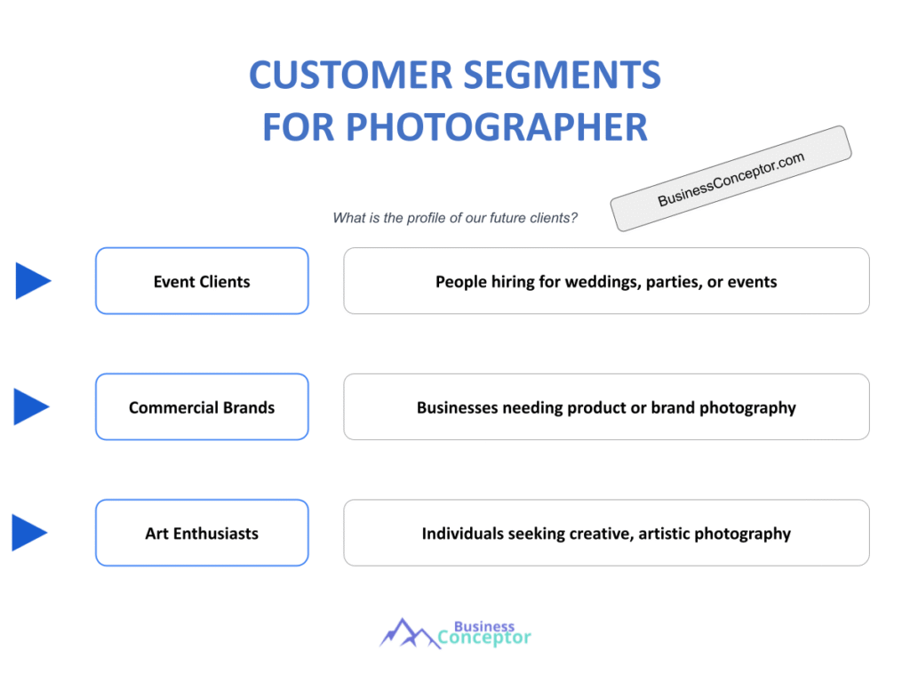 Photographer customer segments are crucial for understanding who your clients are and what they need. By identifying these segments, photographers can tailor their services and marketing efforts to better meet the expectations of their diverse clientele. Whether you’re a wedding photographer, a commercial shooter, or someone specializing in portraits, recognizing the different types of clients can dramatically improve your business outcomes. The photography industry is not just about taking beautiful pictures; it’s about building relationships and understanding the unique needs of each client. This knowledge can help you create targeted marketing strategies, enhance customer satisfaction, and ultimately, boost your income.