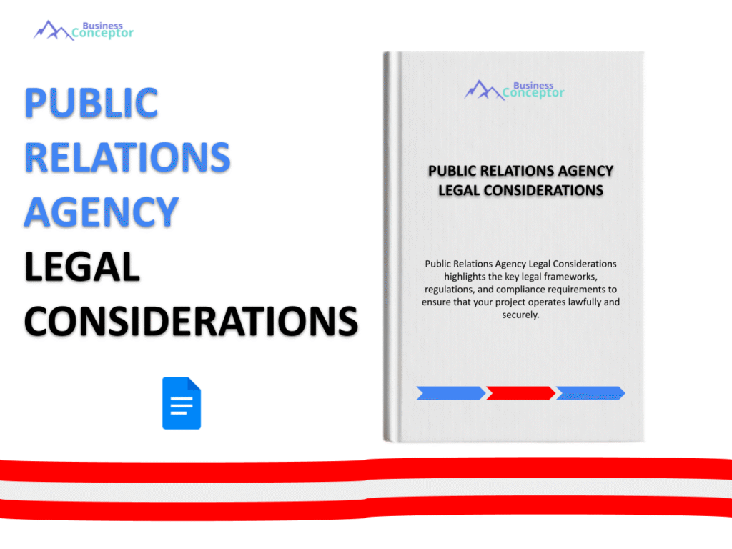 In summary, understanding the various legal considerations for a Public Relations Agency is essential for navigating the complex landscape of this industry. From managing contracts and intellectual property rights to ensuring compliance with privacy laws and defamation risks, being proactive in these areas can save your agency from costly legal troubles and enhance its reputation. To further assist you in establishing a successful PR agency, we recommend utilizing our Public Relations Agency Business Plan Template, which provides a comprehensive framework for planning and executing your business strategy.