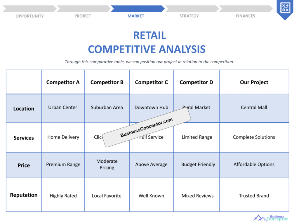 A Retail Competition Study is an analysis that helps businesses understand their competitive landscape. It involves examining competitors’ strengths, weaknesses, pricing strategies, and customer service practices. This study provides valuable insights that can guide retailers in making informed decisions and improving their market positioning.