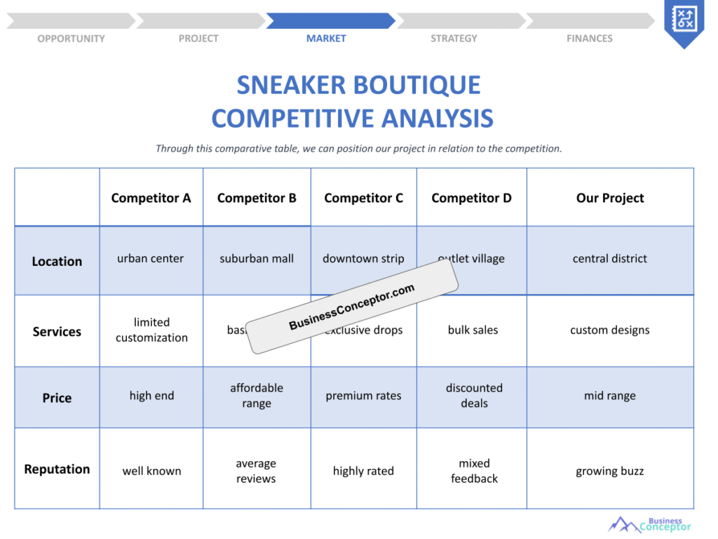 Identify CompetitorsList local and online sneaker boutiques that cater to your target market.