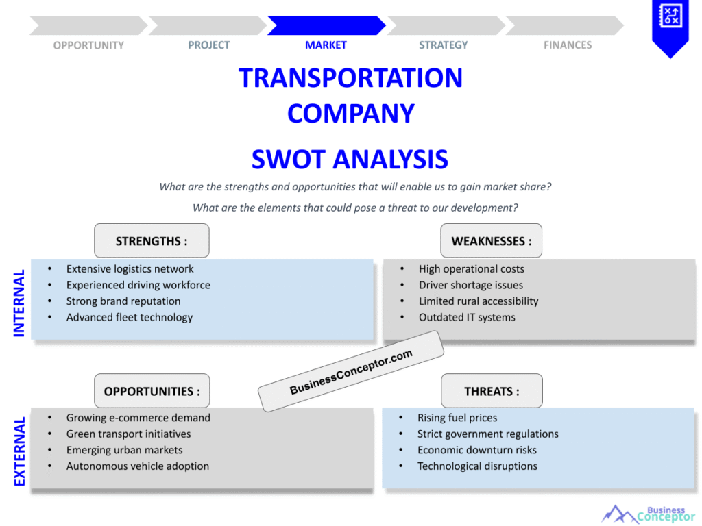 – What a SWOT analysis is and why it’s essential for transportation companies.